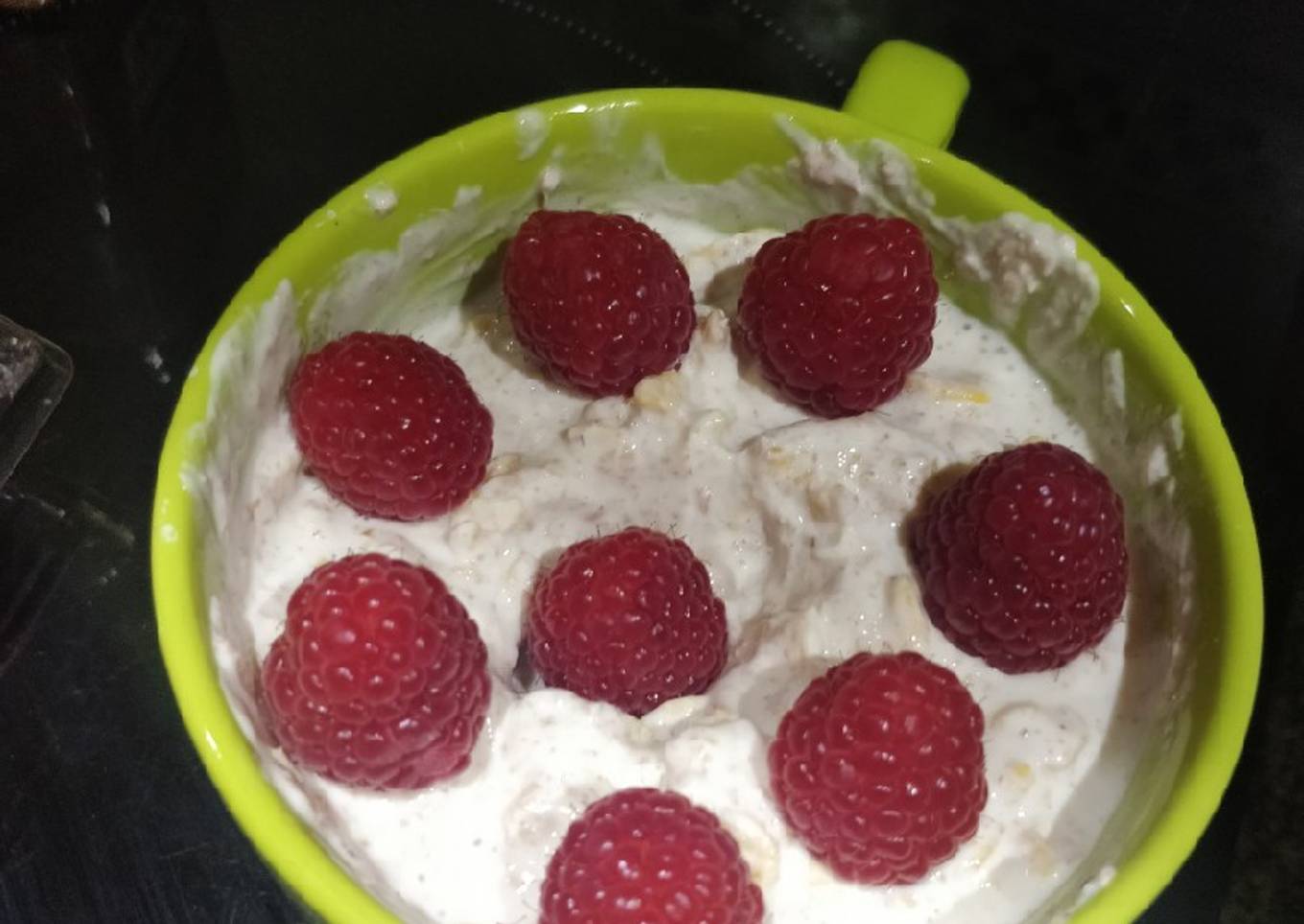 - Poner frambuesas por encima y espolvorearlo con Canela al gusto de cada uno.