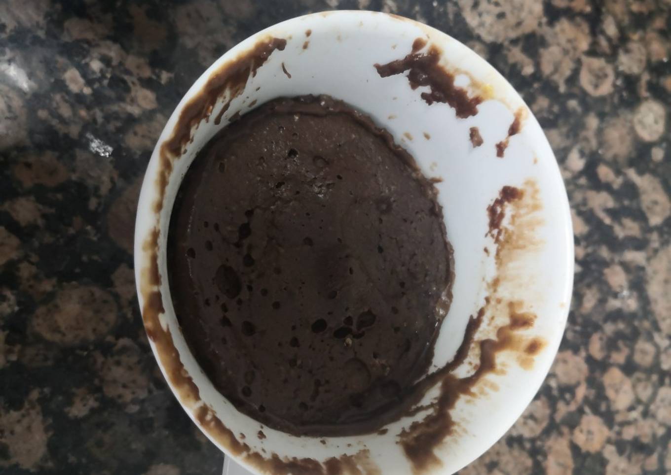 - Cuando veamos que está todo mezclado lo ponemos 2 minutos al microondas a máxima potencia. Pon un plato por si la masa se desborda (no debería pasar, y si pasa nos hemos pasado de cantidad)