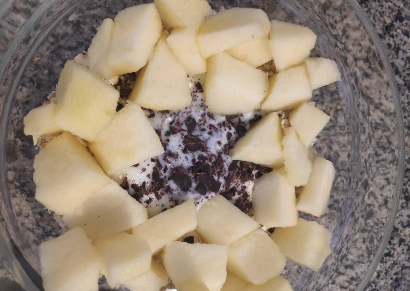 Steps to make to make Desayuno/merienda fit. Yogur, avena y manzana