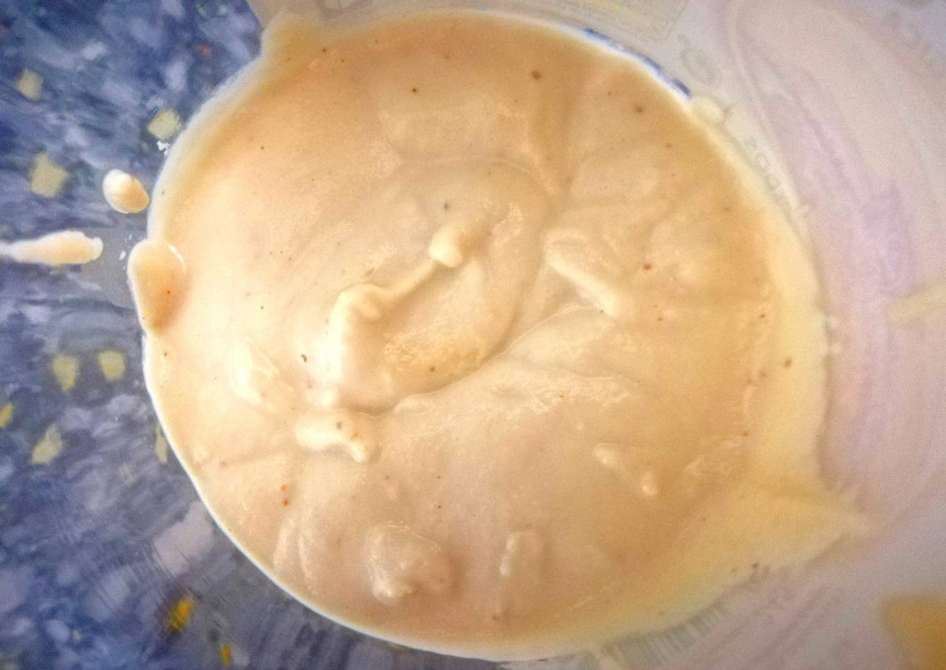 - Escúrrelos y ponlos en el vaso batidor (yo lo hice con el robot Mycook) junto al resto de ingredientes. Para extraer el zumo de limón sin problemas, pongo un colador entre medias, así la pulpa y las pepitas caen ahí