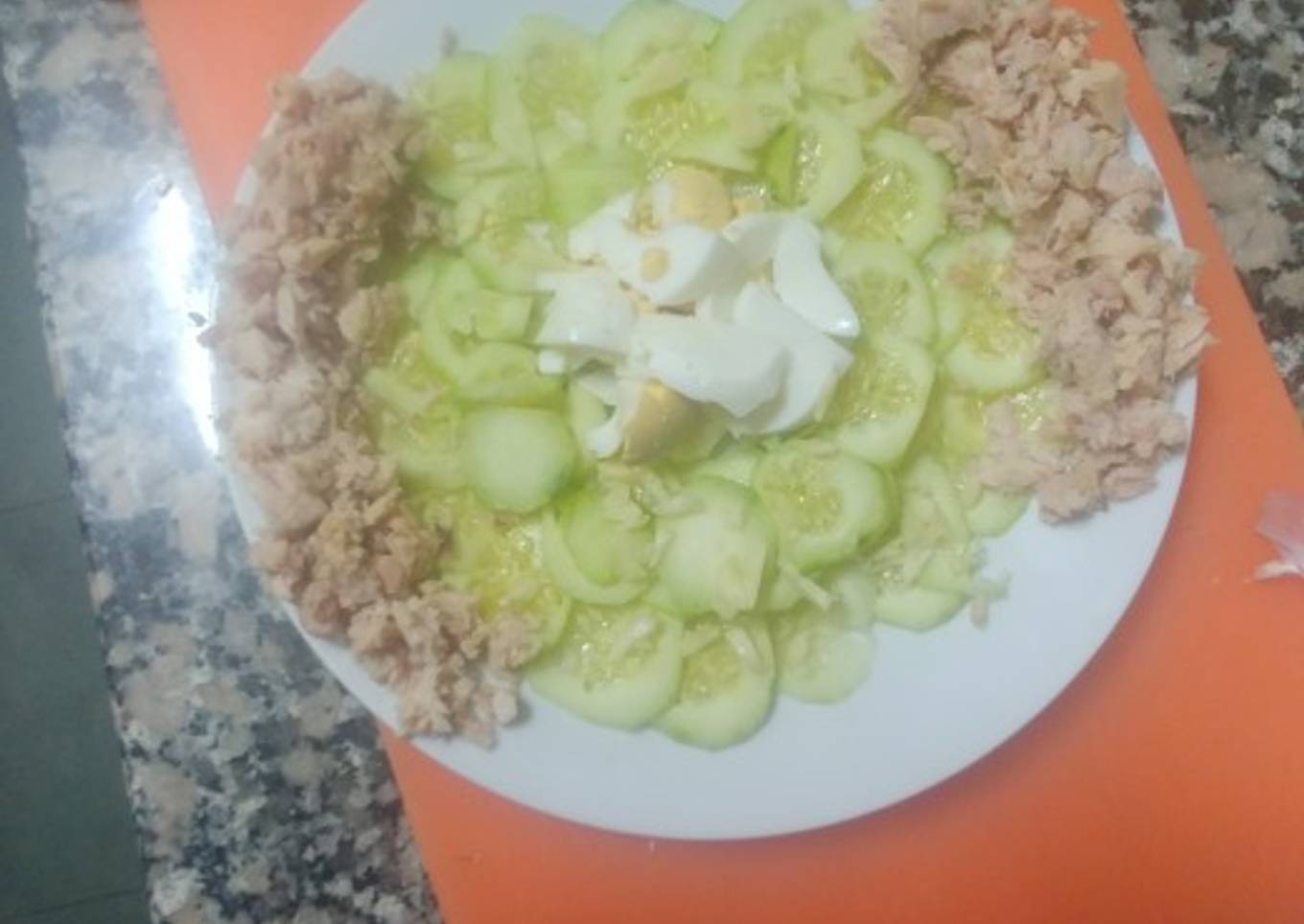 Ensalada de pepino, con huevo y atún