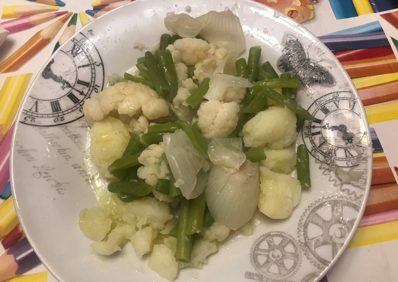 - Hay que ir comprobando para ir sacando hay verduras que se cocinan antes, una vez esté cocinado se saca a un escurridor para que se vaya escurriendo el agua que le quede