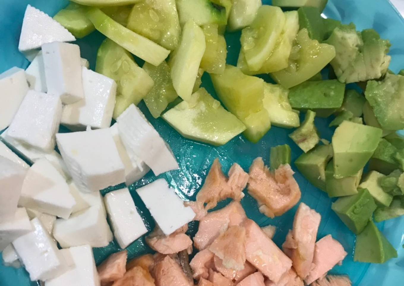 - Cortar el aguacate y el queso fresco y ponerlo en un plato.
