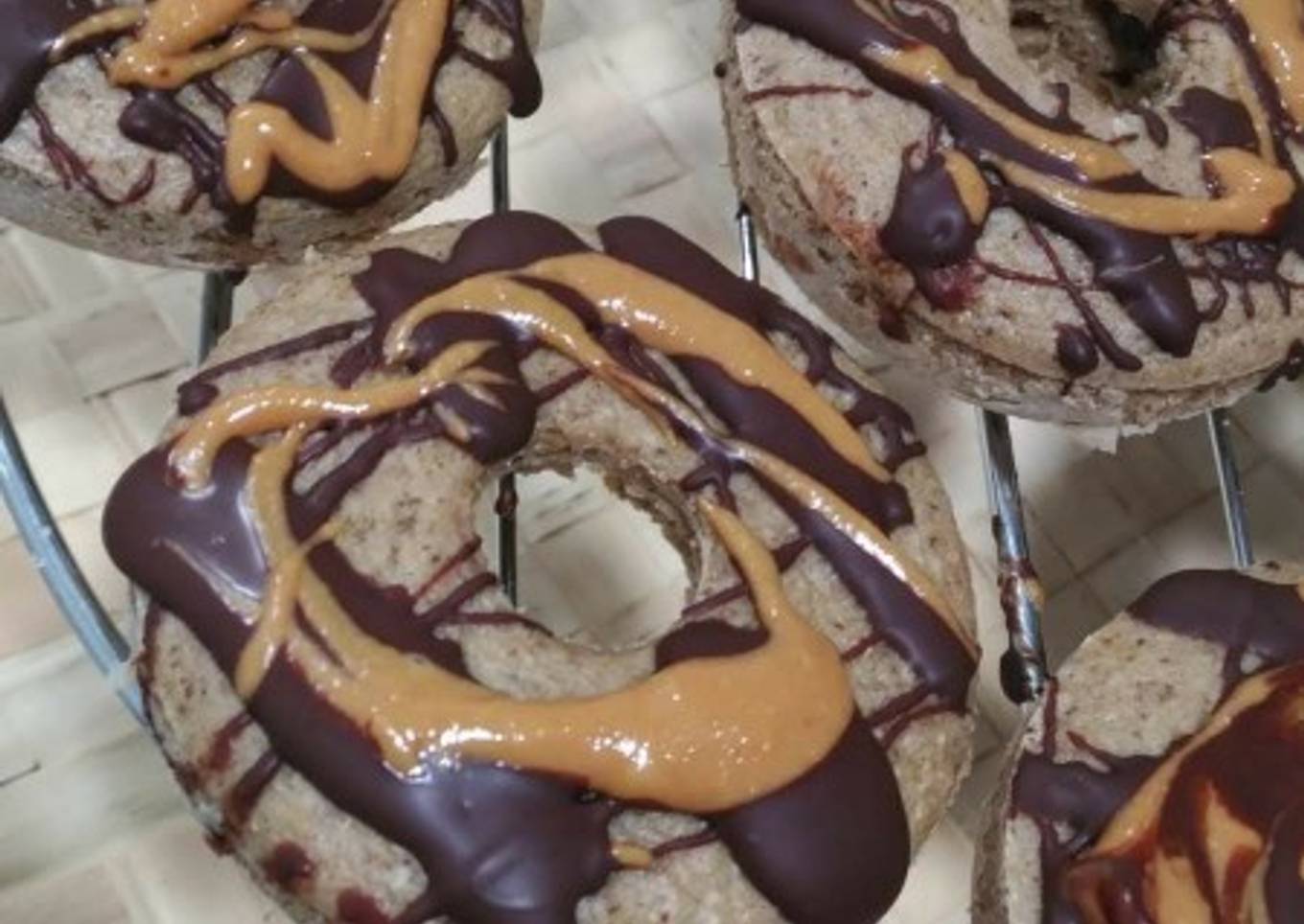 - Una vez fuera del horno, salpicamos los Donut con chocolate y crema de cacahuete, y listos!!