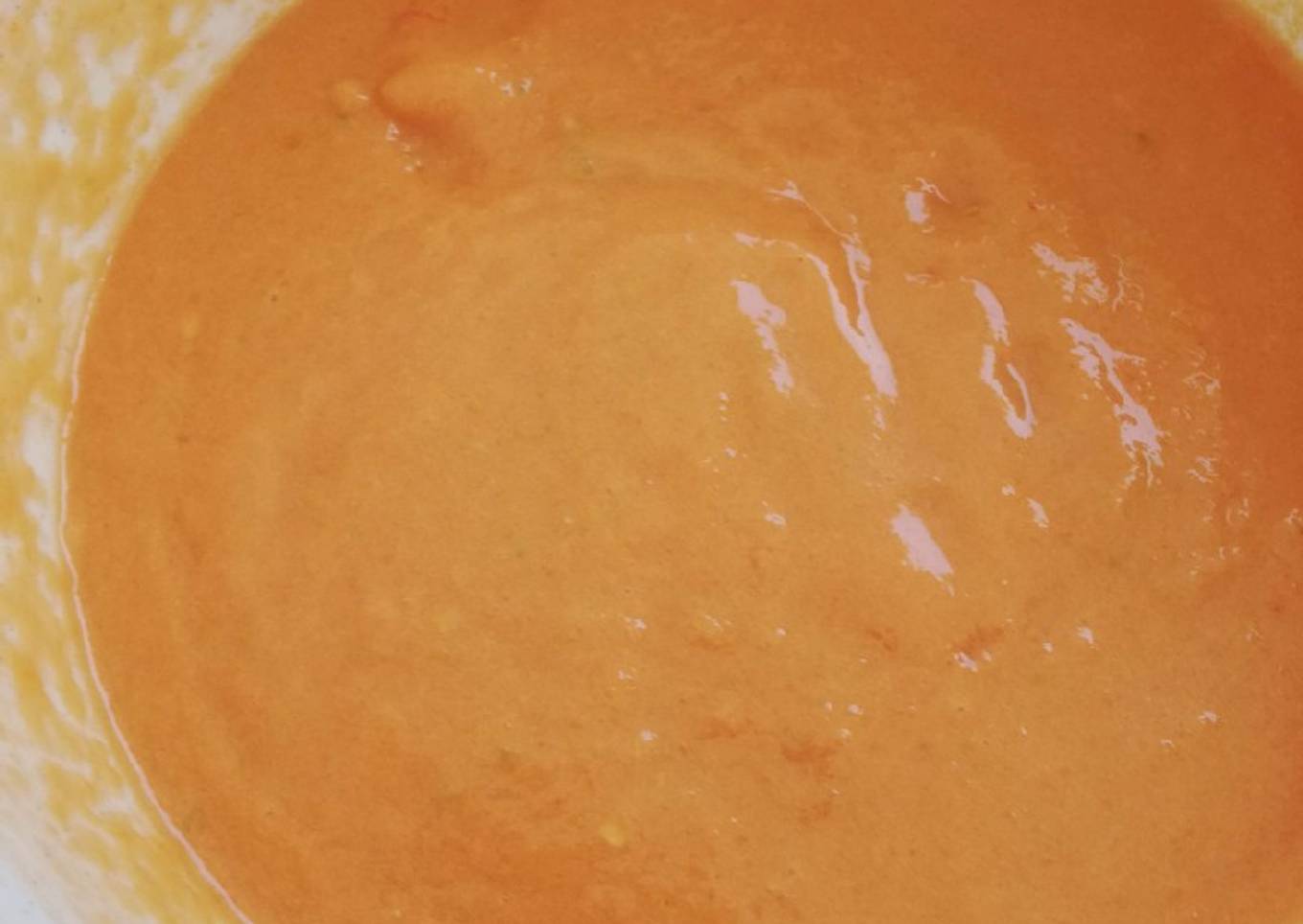- Poner el pimiento. Meter la batidora hasta que quede fino, si queréis se puede pasar por el chino, tiene que salir espeso, sino, añadir más tomate. Se puede tomar en plato acompañado de verdura y huevo duro picadito (zanahoria, pimiento verde, pepino, cebolla)