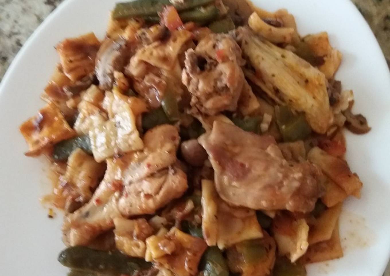 Receta de mí querida madre ......la carne puede ser de pollo, conejo o caza. Yo puse pollo y conejo. Estas medidas son para 4 comensales y si me apuras para 5.