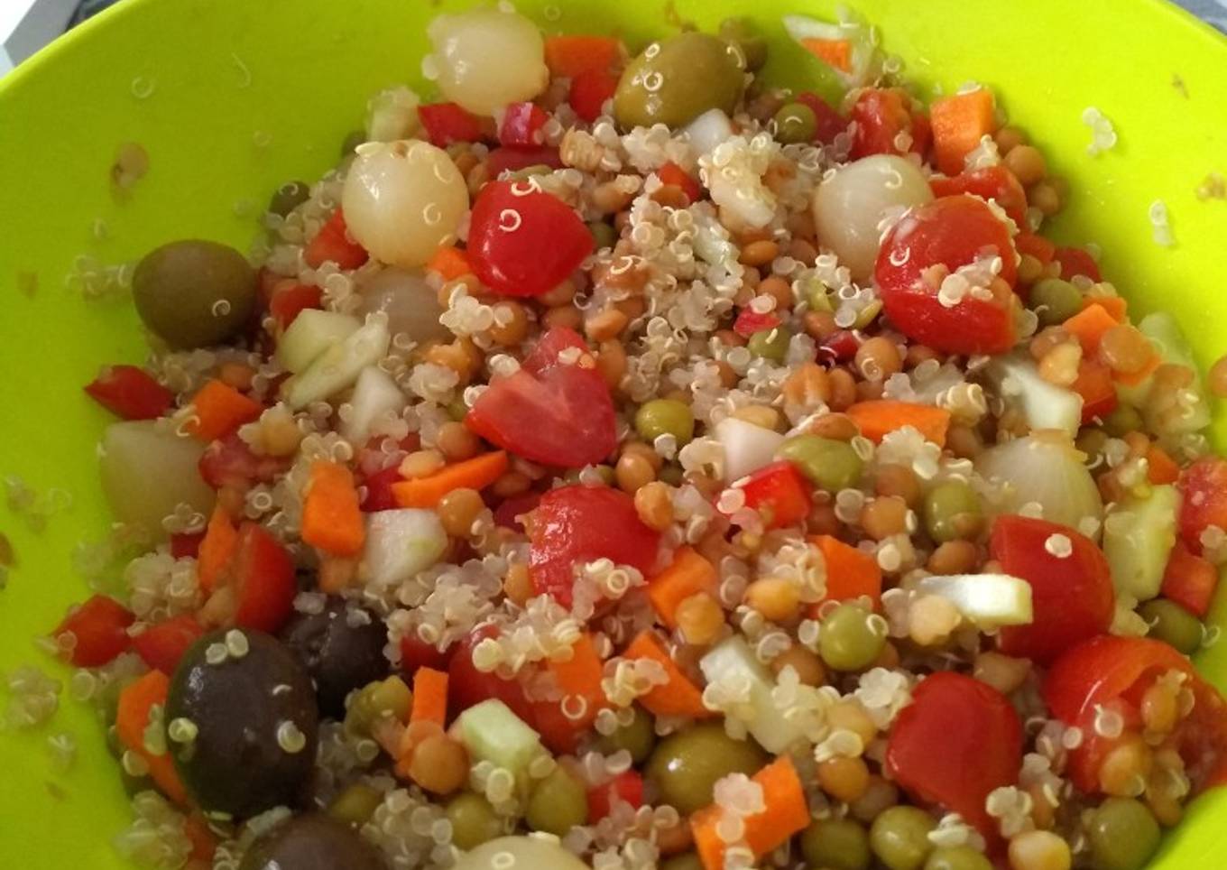 Instructions to make to make Ensalada de quinoa y lentejas veraniega