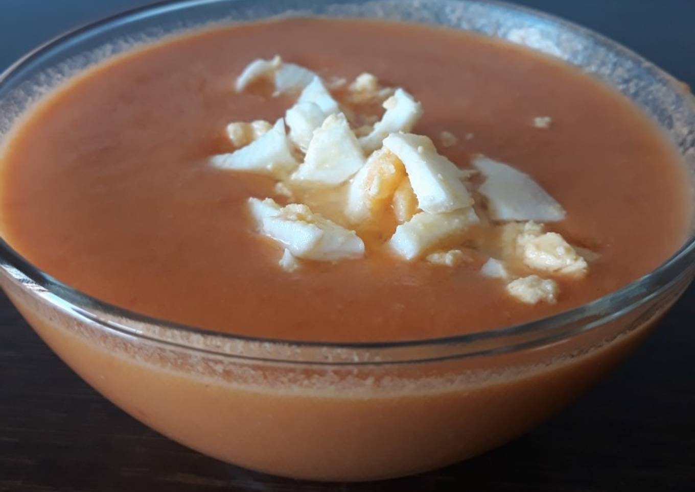 - Ponemos el gazpacho en cuencos individuales, picamos el huevo duro y lo echamos por encima