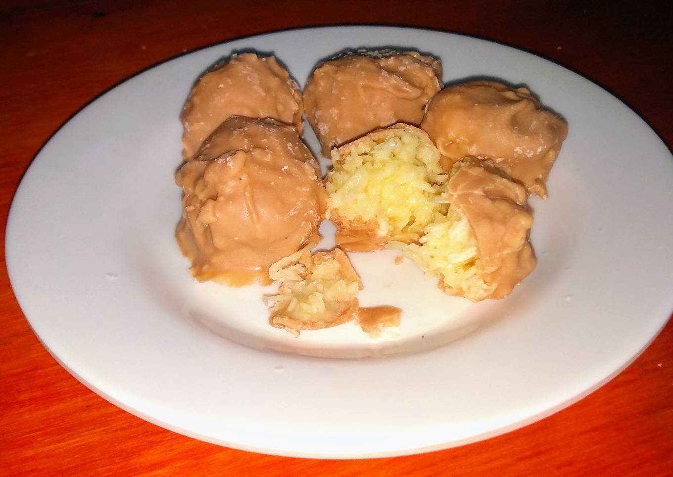 - Hacer bolitas o deditos con la mezcla (de coco y leche condensada) y pasarlos por el chocolate de forma tal que cada uno quede bien cubierto por todo lado
