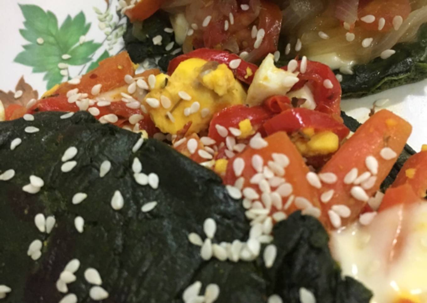 - Solo queda rellenarlos: a 1 crepé le puse zanahoria, morrón, el huevo duro y un poquito de queso cremoso y al otro las cebollas con los tomatitos y un poco de queso. Luego al microondas para gratinar...