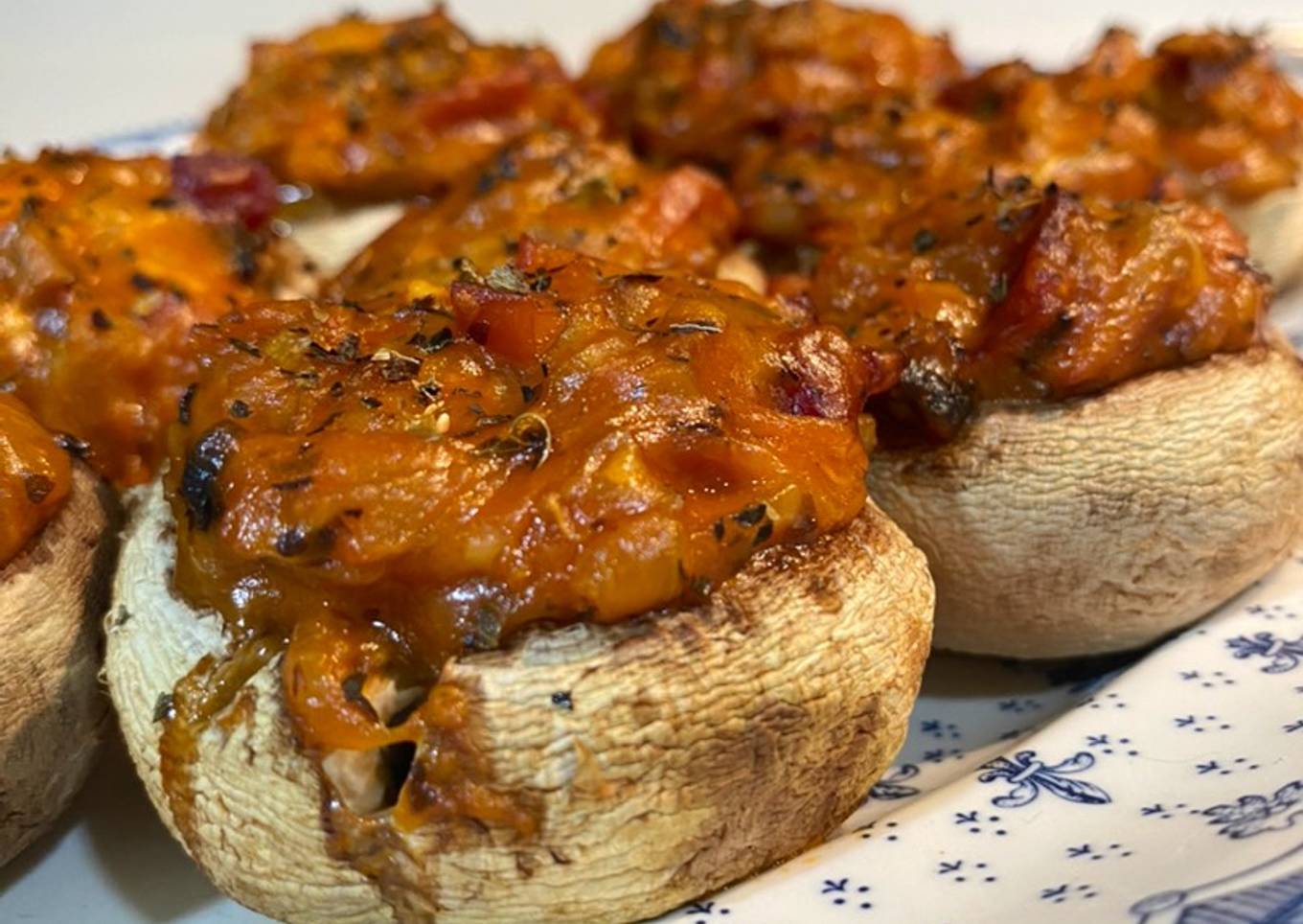 - Rellenamos los champiñones con la mezcla anterior, añadimos orégano por encima y horneamos 15 min a 180 grados (dependerá también del tamaño de los champiñones.
