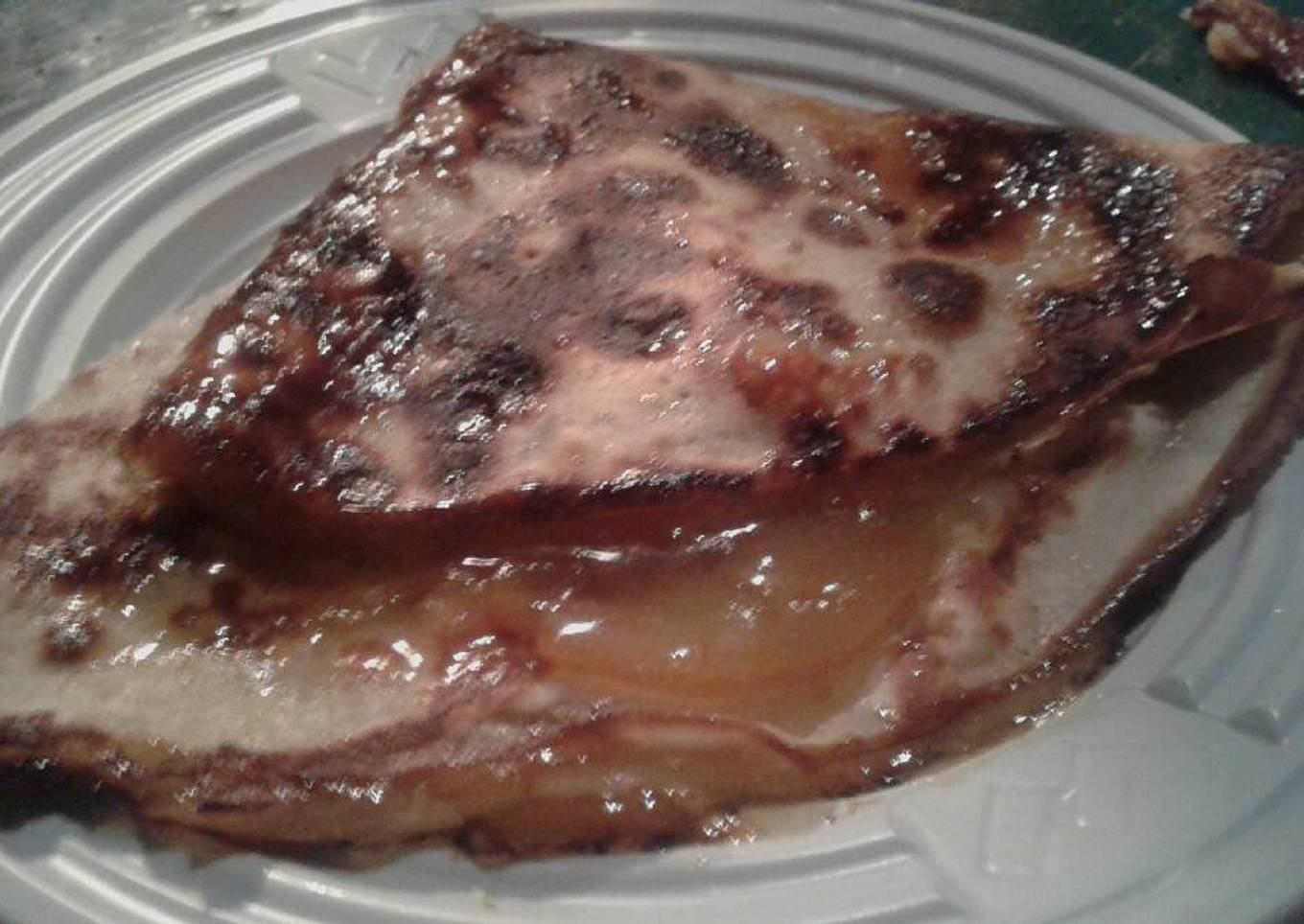 Formar los crepes y una vez coagulada la masa incorporar una generosa cucharada de jalea o mermelada de naranjas.