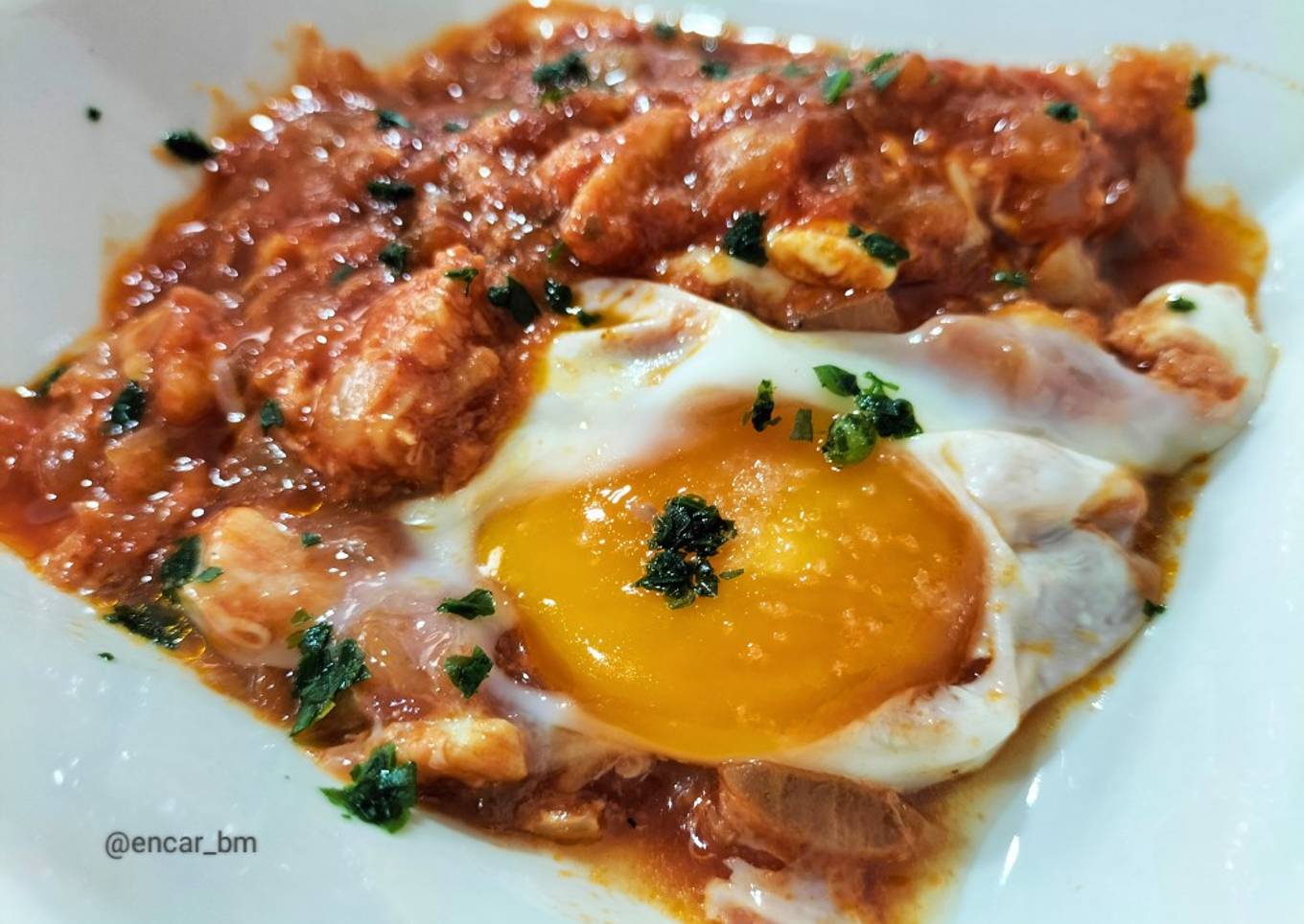 Es la mezcla de dos platos que le encantaban a mi padre (bacalao con tomate y huevos con tomate).
